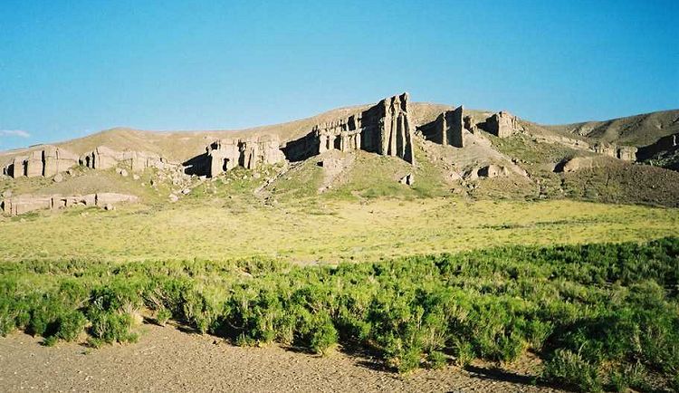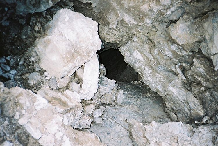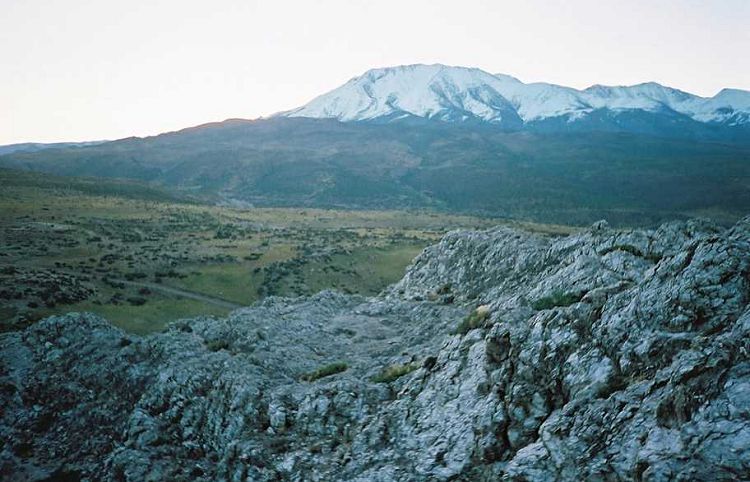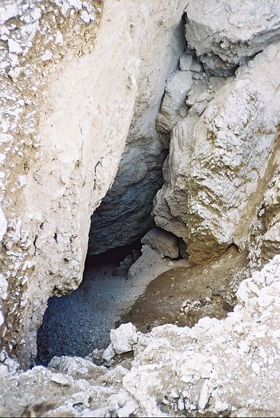 (click on images to enlarge) Bardas BlancasNear to Malargüe there is a relatively large area of Jurassic limestone which contains the Cavernas de Las Brujas. Brujas has been converted into a showcave and the limestone hills surrounding it form part of a reserve. There is no access to Brujas for cavers or the promising limestone behind it for exploration. Hence we were restricted to exploring some of the outlying fragments of limestone that top some of the hill tops around the reserve. These fragments are too steeply bedded and two thin to contain significant lengths of passage. Despite this we did find a couple of small caves with one surveyed to a length of 24m.