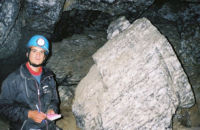 Argentina 2001The primary objective of the expedition was to survey Cueva Federación, a new discovery found during last year's conference. Secondary objectives were to visit the other caving areas around Malargüe, In particular a large strip of gypsum is found in the foothills of the Andes, roughly parallel to the Chilean border. Several caves have already been recorded suggesting that the gypsum in Argentina is a promising cave bearing rock. The caving areas are located several hours drive from the nearest 'tarmac' road and are not accessible during the winter months due to snow. Poti MalalSouth West of Malargüe, close to the Chilean border, is the small valley of Poti Malal, a tributary of the Rio Grande. The gypsum in this area is notable for the impressive entrance of San Agustin and the recent discovery, Cueva Federación. Although we spent only two half days in the valley it soon became apparent that there is potential here for further discoveries. San Agustin is essentially a large collapse feature that has resulted in rubble ramp that descends as far as the water table. Opposite the entrance ramp is a huge boulder slope that ascends into the hill as high as the entrance. In periods of wet weather the floor is covered by water. There are no side passages and no realistic possibility for extensions. The focus of our visits to Poti Malal was to undertake a survey of Cueva Federación and explore leads left from 2000. Typically for gypsum the cave begins with a loose, bouldery entrance. Beyond the choke is a large chamber littered with rocks and dominated by one large boulder on the left. The only exit from this chamber is a descent through boulders on the left-hand side. At this point the character of the cave changes and the passages are low sandy crawls. The draft in Federación is particularly noticeable in these crawls but is lost in area of chokes above the T-junction. The choke can be climbed into, directly above the T-junction, to access a steeply inclined rift. No way at the top was apparent and the choke could only be followed in a loop that rejoins the sandy crawl further back. To the right at the T-junction is Galeria Mendip. This extremely sharp, and in places rather tight, passage can be followed for approximately 100m until the way on is impassable. At several places there are voids in the choke on the left-hand side but none can be followed far. An effort with a hammer and crowbar might extend this fault-controlled passage further. Much of Galeria Mendip is well decorated. Turning left at the T-junction a low passage enters an area of boulder chokes. These are passed by descending a squeeze hidden behind a boulder on the left and wriggling along a flat out sandy crawl. The area beyond the squeeze was a new discovery for 2001. The choke can be accessed at several points but we found no obvious way on. After 30m the crawl pops out into some fine stooping sized passage. The small passages on the right hand side are blind. Inevitably the passage ends in another boulder choke. This is passed at floor level to regain walking sized passage. The choke is easily climbed at this point to enter the Second Chamber. This is slightly smaller than the entrance chamber and is similarly boulder floored. The presence of animal droppings suggests that there may have been an entrance at this point in the past, now blocked by boulders. The survey does indicate that this chamber lies not far from the valley side. A second route into the chamber (unsurveyed) was forced through boulders to a connection with the passage below. Continuing along the main passage the cave has developed into a fine meander: not what we were expecting in gypsum. This abruptly ends in yet another choke. Immediately beyond this choke is a small chamber with a floor of damp sand. There is a slight draft here but the choke could not be passed at roof level. Around the walls of the chamber is a tide mark that indicates that in wet weather it may half fill with water. The cave length is 350m including roughly 100m of passage in Galeria Mendip left unsurveyed. ![]() The only other notable cave in the Poti Malal valley is Doña Palmira. Although only 20m in length this cave is extremely significant. It is located on the valley side just above the level of the river. Immediately inside is a large sump (undived) which suggests that there is a flooded phreatic layer in the valley. Above the sump is a short length of fine phreatic passage, stooping sized in height, with a small vadose trench. This is blocked after a short distance but the vadose trench looks diggable. (Extended in 2002) Other spelaeological features were noted in the valley. A possible fossil resurgence was spotted immediately below the entrance of Federación. This drafts slightly but was only given a cursory dig. However further down valley is an active resurgence with water emerging from a bank of soil. Above Federación we briefly looked at the hillside. The gypsum here is extremely weathered and there are small caves associated with faults and weathering. One did have a strong draft but needs a bit of digging out. From the top of the ridge we were able to look down on the next valley which also contains gypsum. This has not been looked at and may be worth a visit. (click on images to enlarge) PincheiraNearer to Malargüe, to the west, is small outcrop of gypsum at Pincheira. This was worth the visit if only for the impressive scenery and in particular the picturesque weathered rocks at Castillos de Pincheira. The outcrop of gypsum, much of which is being quarried away, contains a number of small caves. Most are extremely loose and dusty although in places they are well decorated. We visited four or five just to get a flavour of the place. There is little potential for large cave development here, and the landscape was reminiscent of the hillside above Poti Malal.